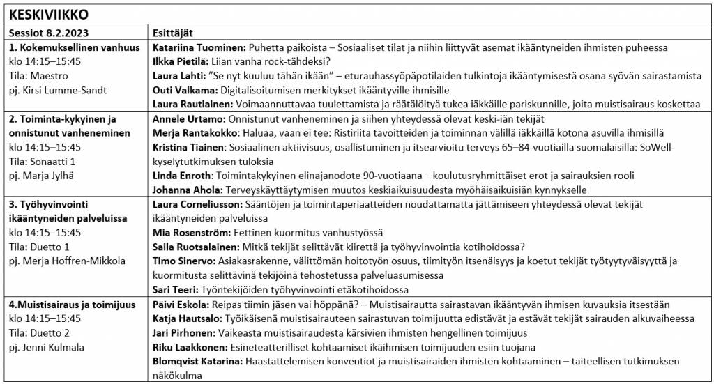 Keskiviikko 8.2.2023 klo 14:15–15:45, Tila: Duetto 2, pj. Jenni Kulmala