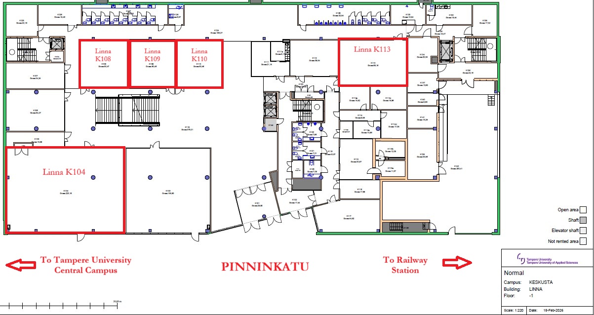 The conference venue is the Linna building (Kalevantie 5) in Tampere University’s central campus, within a short walking distance of the main railway station. The conference rooms are all located on floor -1.